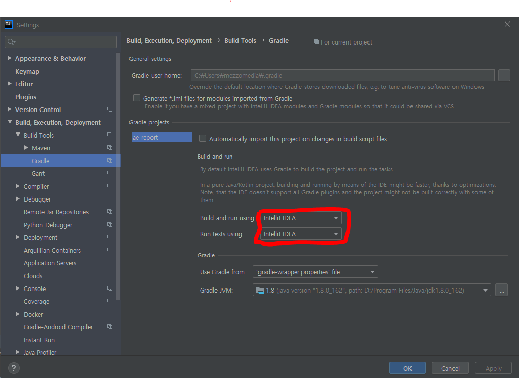 Build and run using : gradle → IntelliJ IDEA 로 변경