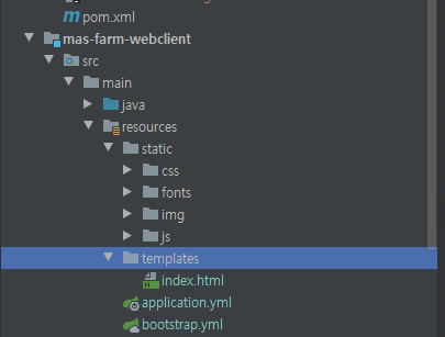 빌드가 완료되고 나면 src/main/resources/static , src/main/resources/templates, 밑으로 파일이 생성된 것을 확인 할 수 있다.