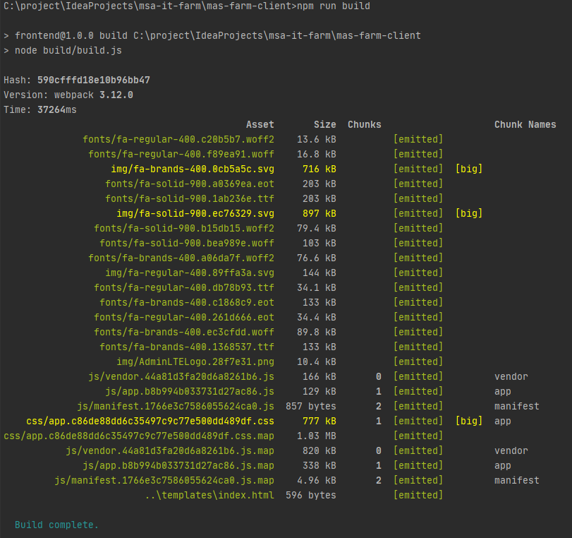 # 빌드 명령어 실행 npm run build