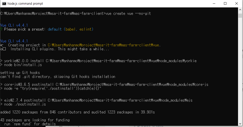 프로젝트 폴터(vue 폴더) 로 이동하여 실행 하는 방법까지 알려준다.