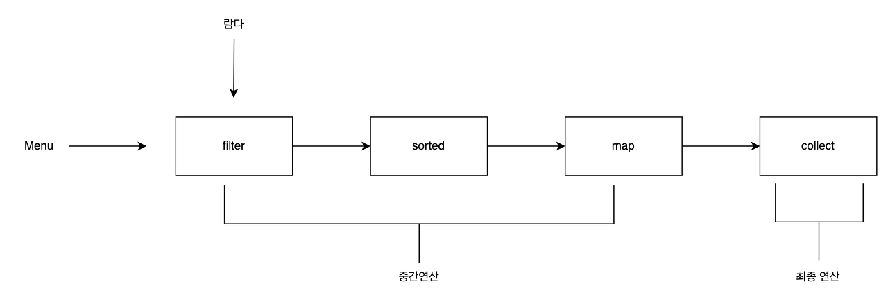 연결할수있는 스트림 연산을 중간연산이라고 하고, 스트림을 닫고 최종결과를 도출하는 연산을 최종연산이라고 한다.