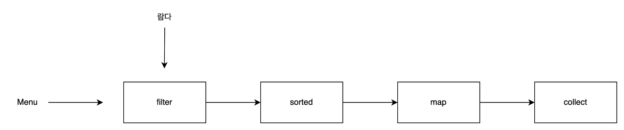 Stream 의 여러 기능중 filter, sorted, map , collect 같은 여러 빌딩 블록 연산을 연결해서 복잡한 데이터 처리 의 파이프라인을 만들어 낼수있다. 여러 연산을 파이프라인으로 연결해도 여전히 가동성과 명확성이 유지된다.
