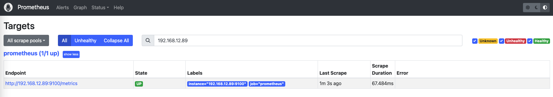 - targets: ["localhost:9090",**"192.168.12.89:9100"**]