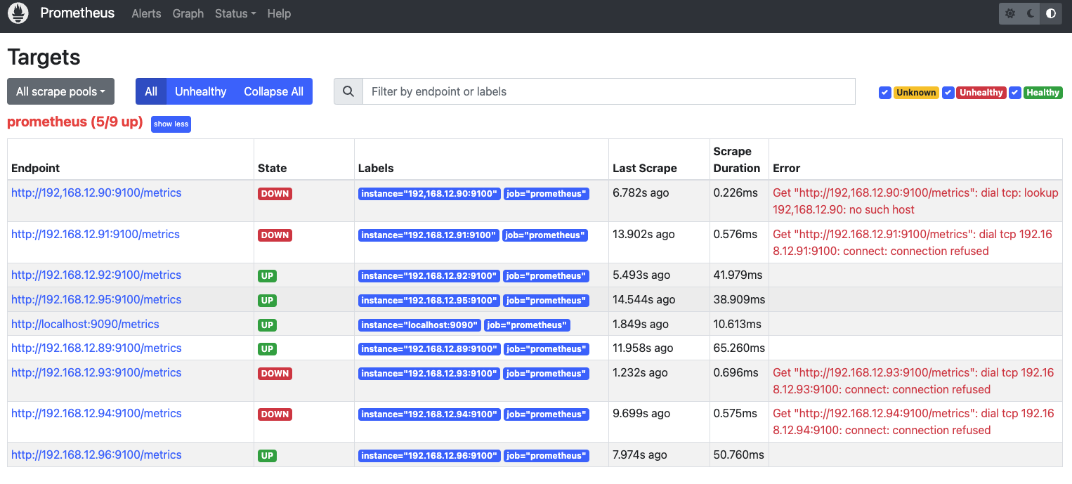 - targets: ["localhost:9090","192.168.12.89:9100","192,168.12.90:9100","192.168.12.91:9100","192.168.12.92:9100","192.168.12.93:9100","192.168.12.94:9100","192.168.12.95:9100","192.168.12.96:9100"]