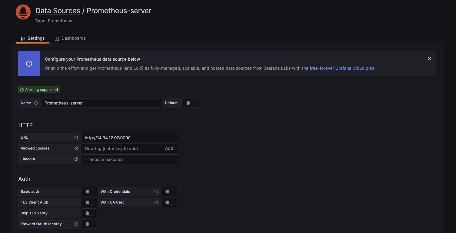 - url : promethous server 가 설치 된 서버의 url 및 port 입력