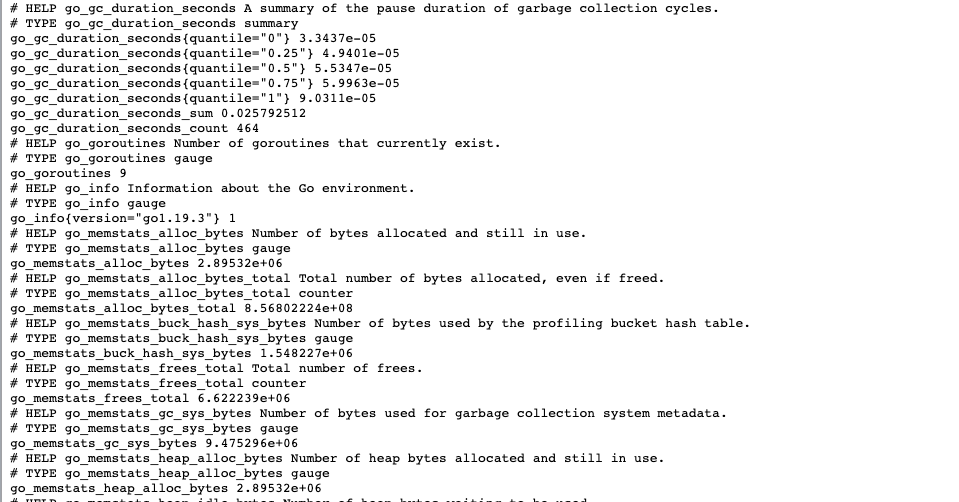 해당 서버에 접속하게 되면 promethous server 에서 폴링해서 가져갈 내용을 node_exporter(server:9001) 서버의 9100 포트를 통해 metrics 를 제공하는 것을 확인 해볼수있다.