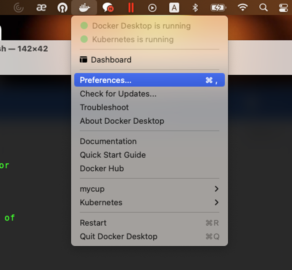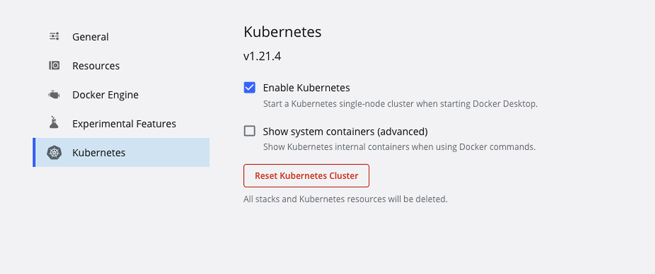 docker desktop을 켜고 설정에서 쿠버네티스를 체크하여 활성화 시켜준다.