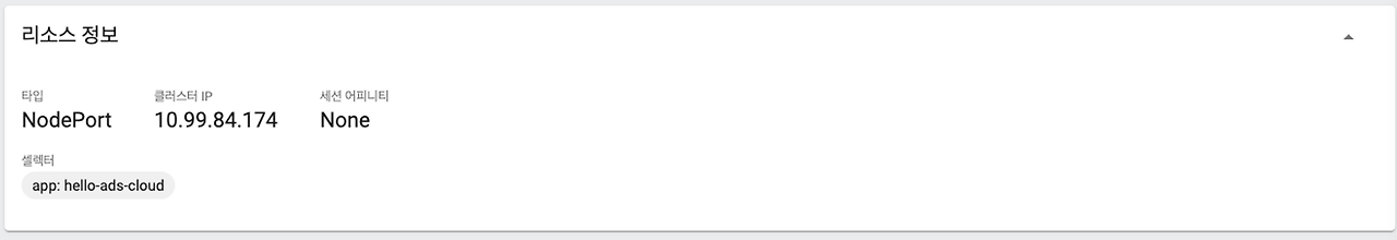 app: hello-ads-cloud # 서비스 객체에 라벨을 정의하여 쿠버네티스 오브젝트의 그룹화와 관리를 할 수 있다.