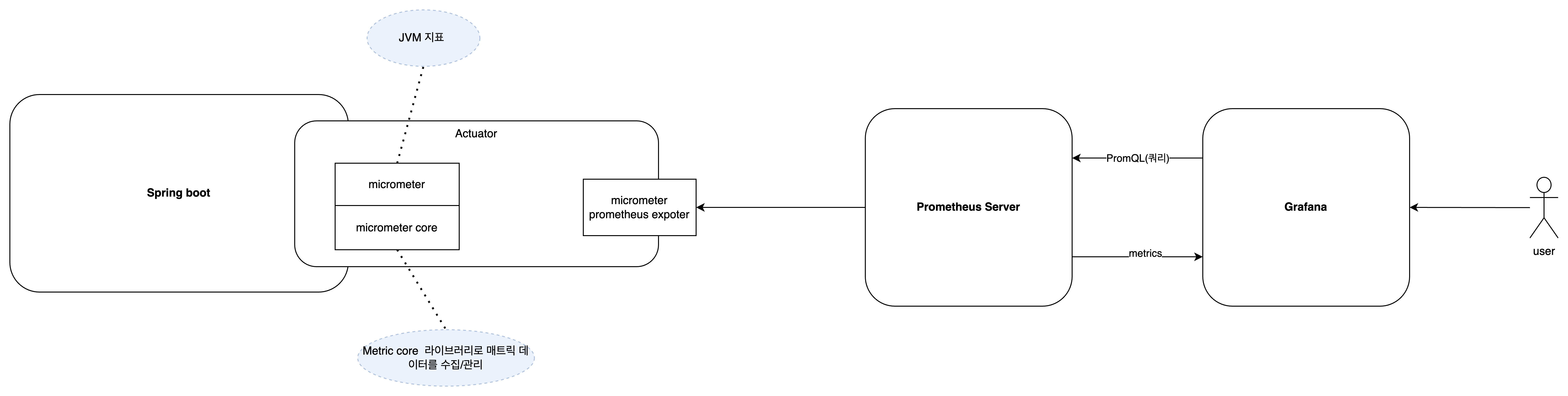 Springboot 에서 prometheus를 사용할때, Actuator 와 micromether 를 함께 사용한다.