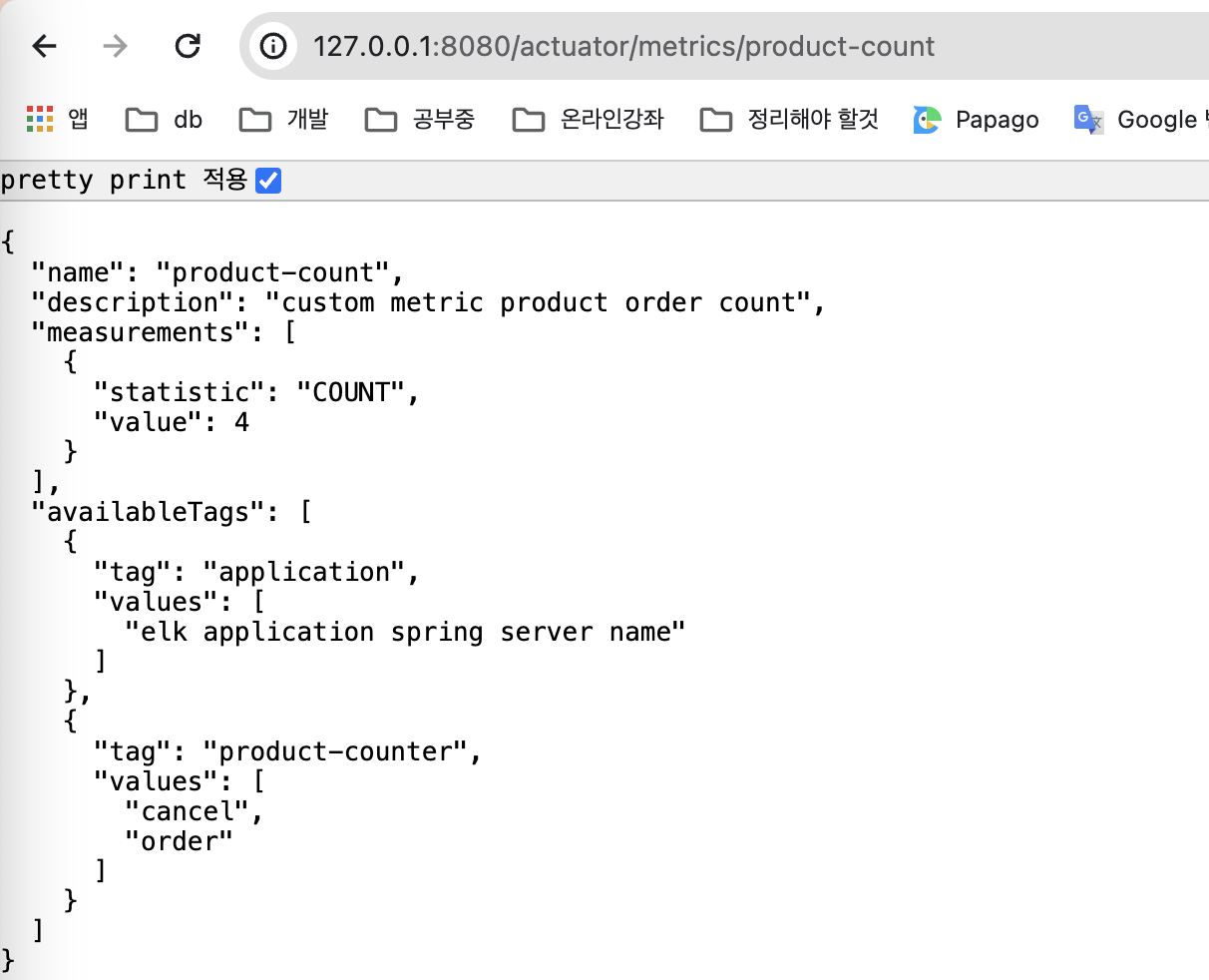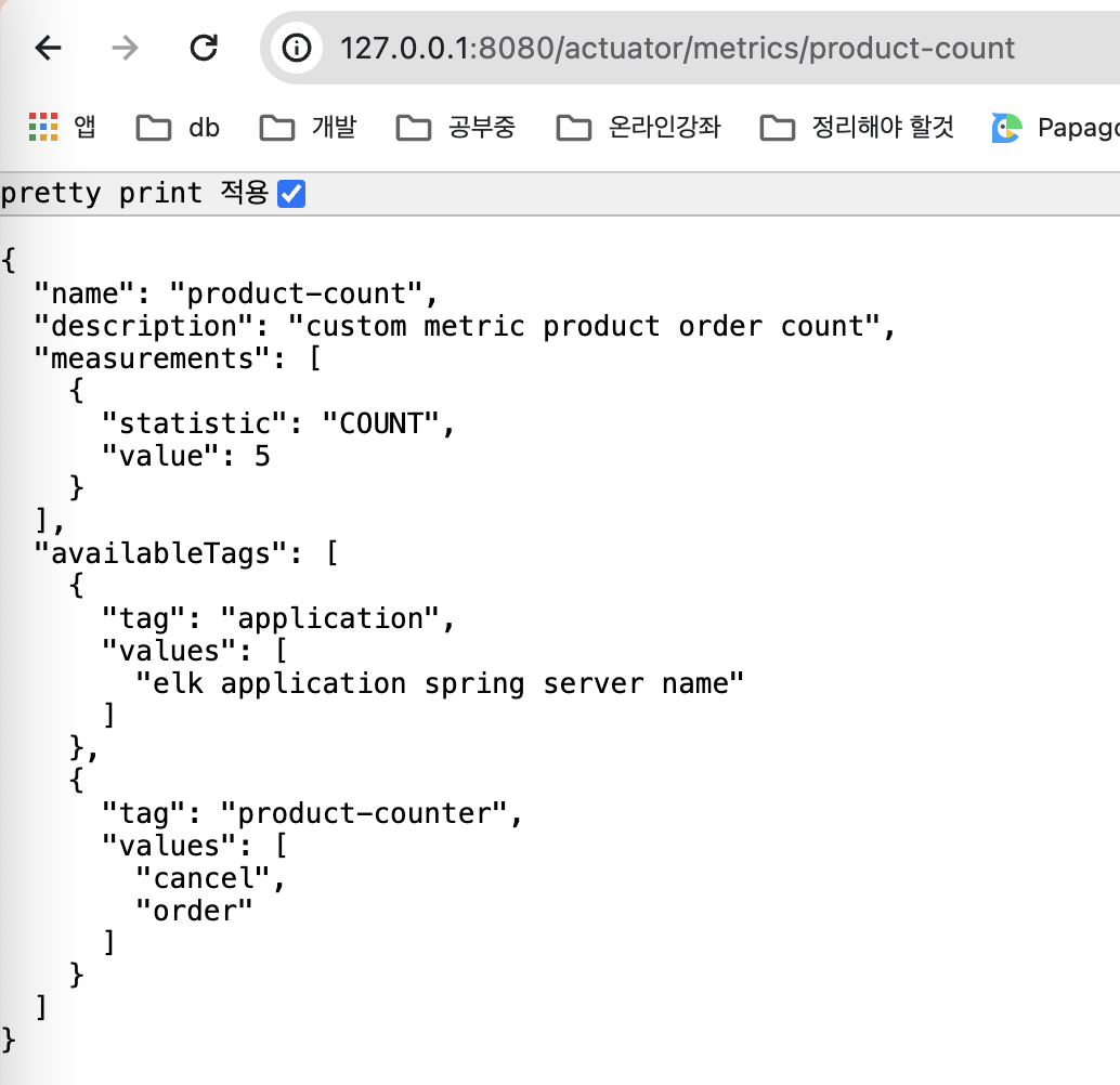 Custom 하게 새로 만든 매트릭 지표를 확인 할 수 있다. “product-count” ( 구분을 콤마(.) 로하는걸 보니, 다음엔 콤마(.)로 변경하여 사용하자. )