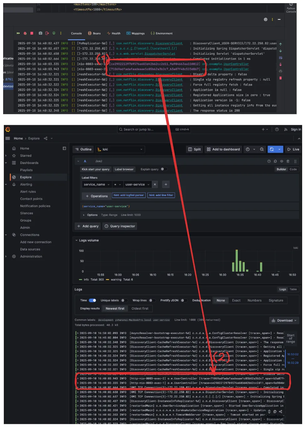 Console 및 Loki 로그 확인